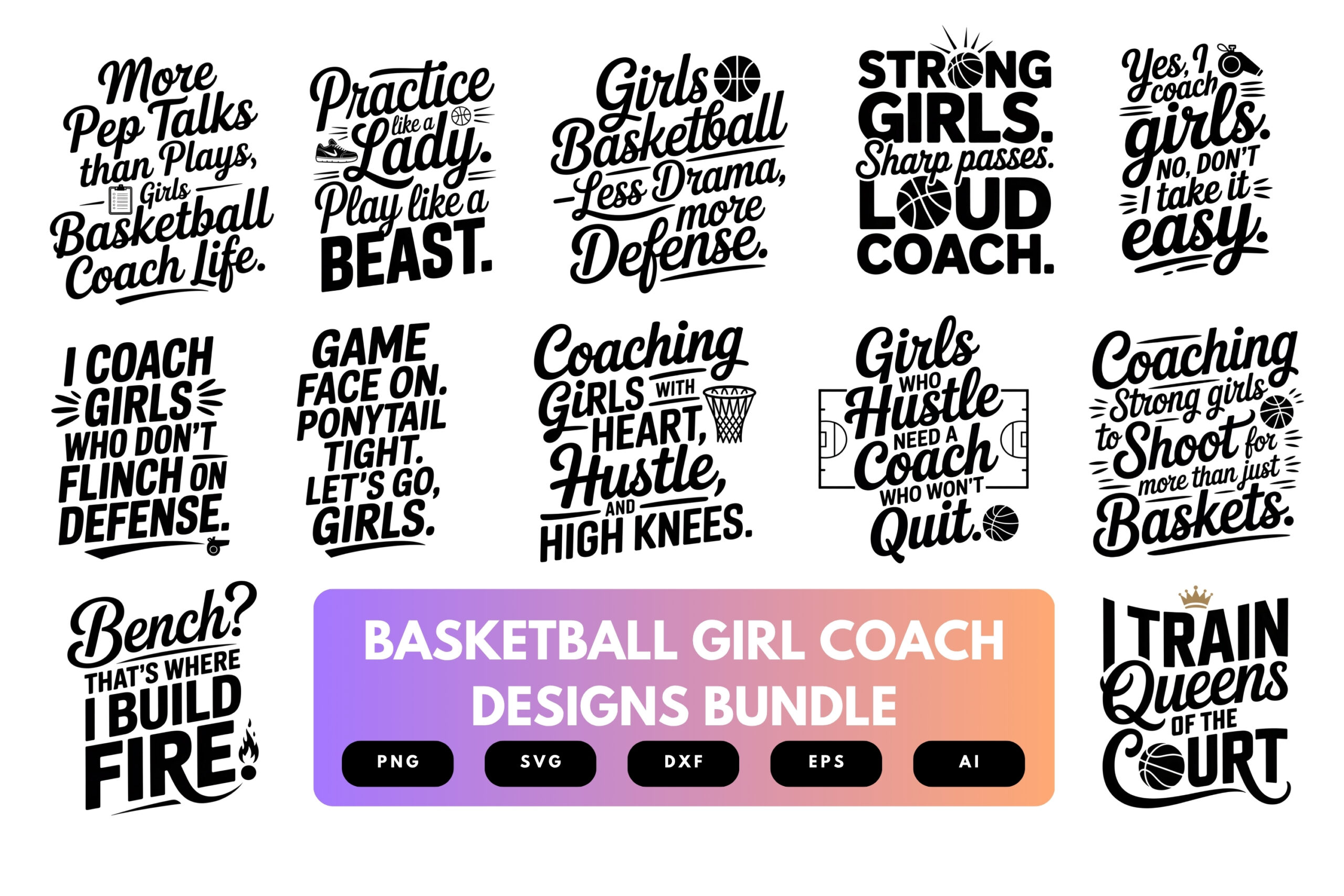 Basketball Coach SVG Bundle | Girl Basketball Silhouettes , Sports Quote Cut Files for Cricut & Sublimation