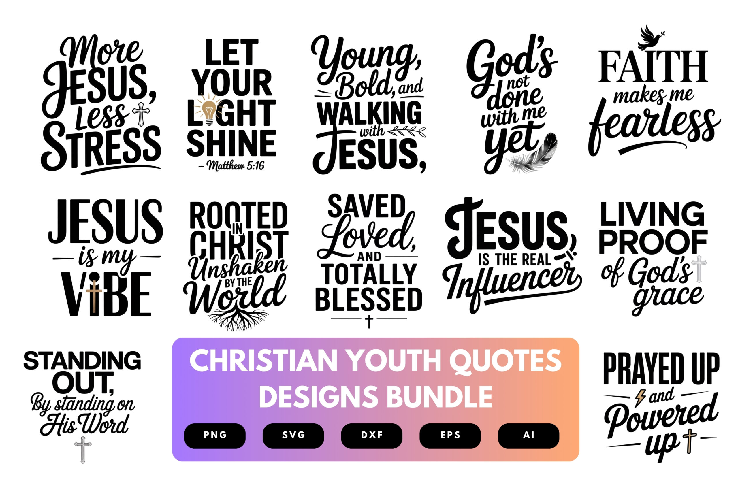Christian Youth SVG Bundle | Faith Quote Clipart, Inspirational Cut Files for Cricut & Sublimation