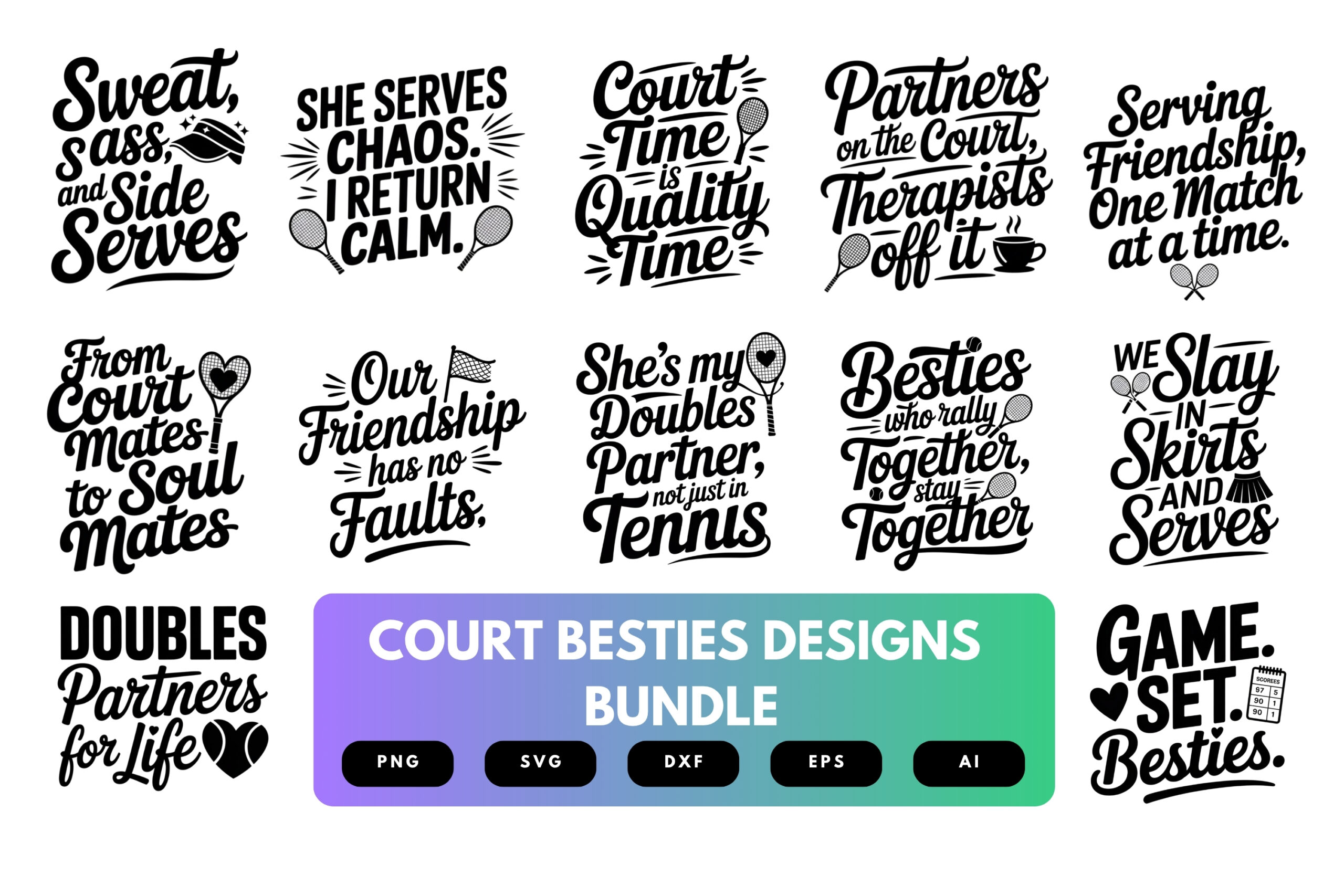 Court Besties SVG Bundle | Sporty BFF Quotes, Basketball , Tennis Cut Files for Cricut & Sublimation