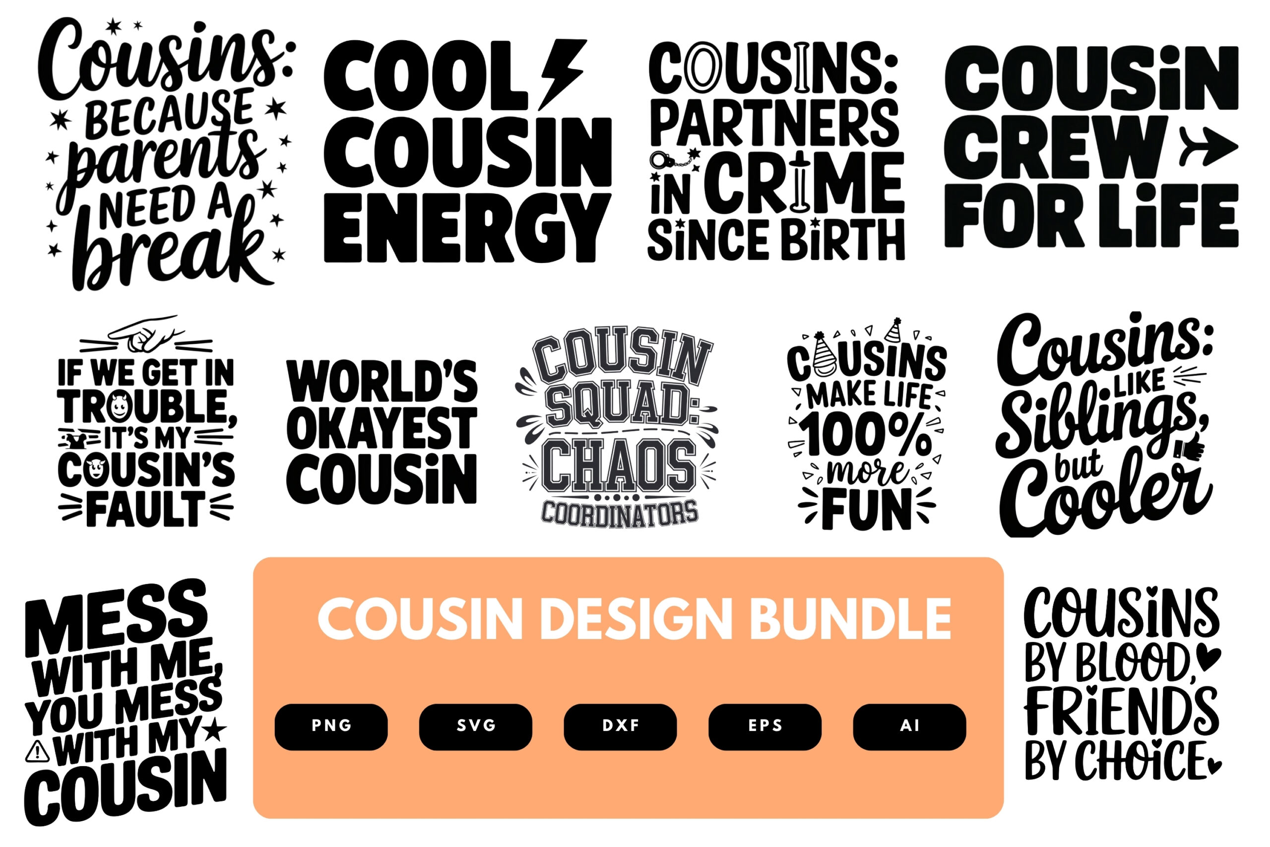 Cousin SVG Bundle | Family Quote Clipart, Funny Cousin Silhouette Cut Files for Cricut & Sublimation