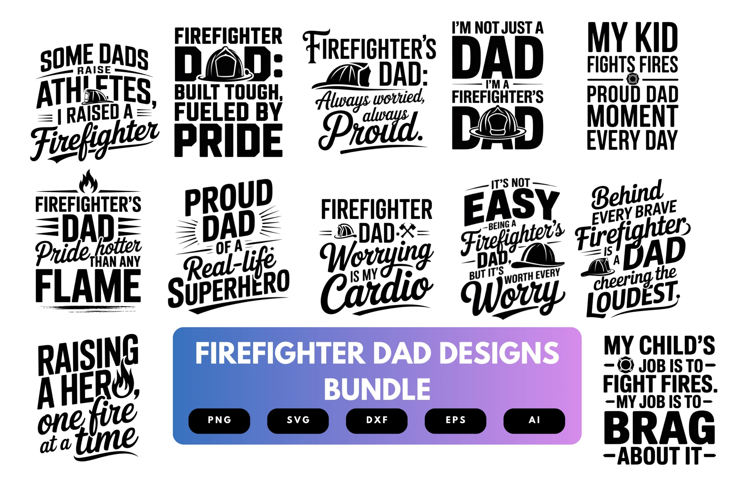 Firefighter Dad SVG Bundle | Hero Dad Quotes, Fire Department Cut Files for Cricut, Sublimation & DIY Crafts