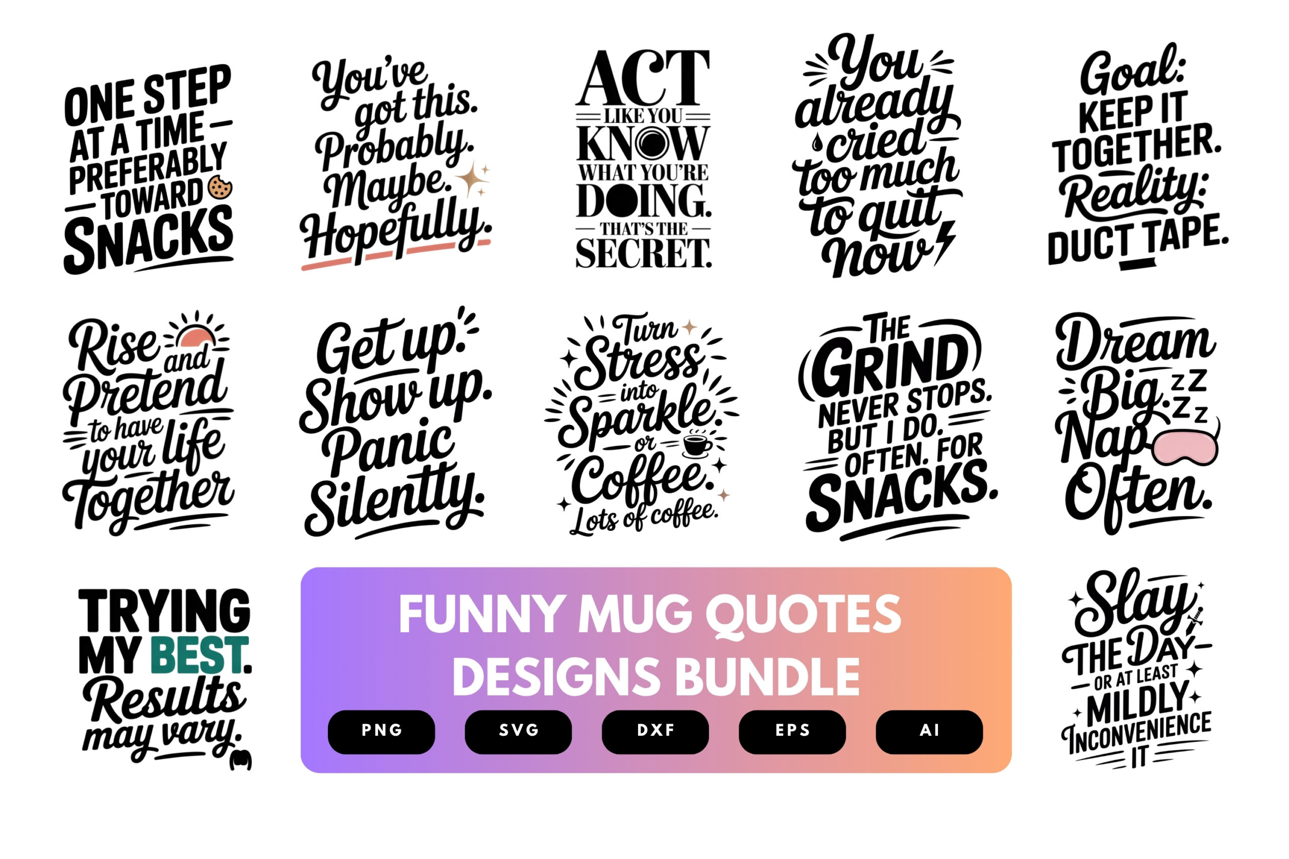 Funny Mug Quotes SVG Bundle | Sarcastic Coffee Sayings Cut Files for Cricut, Silhouette & Sublimation