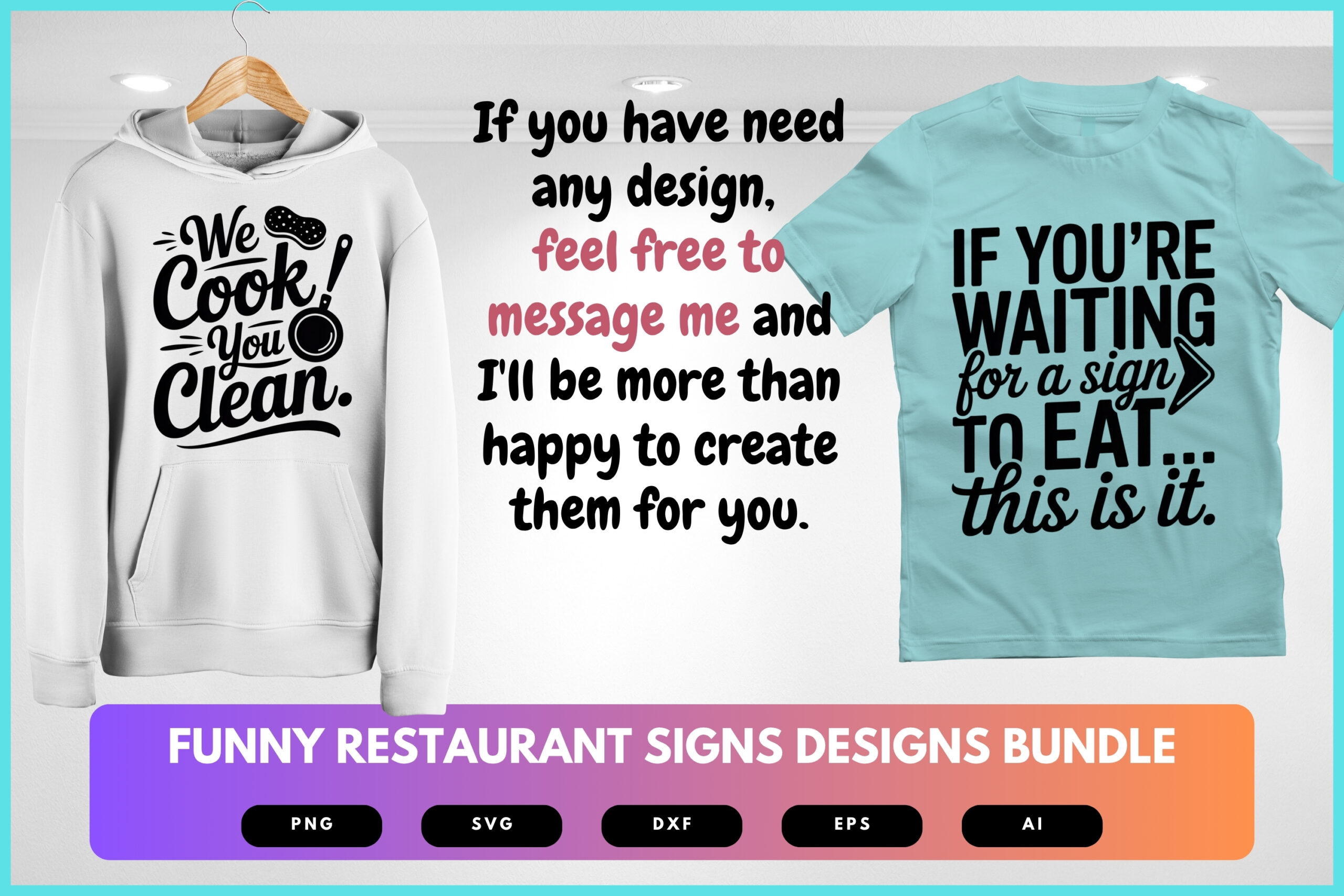 Funny Restaurant SVG Bundle | Kitchen Humor Sign Clipart, Chef Quote Cut Files for Cricut & Sublimation