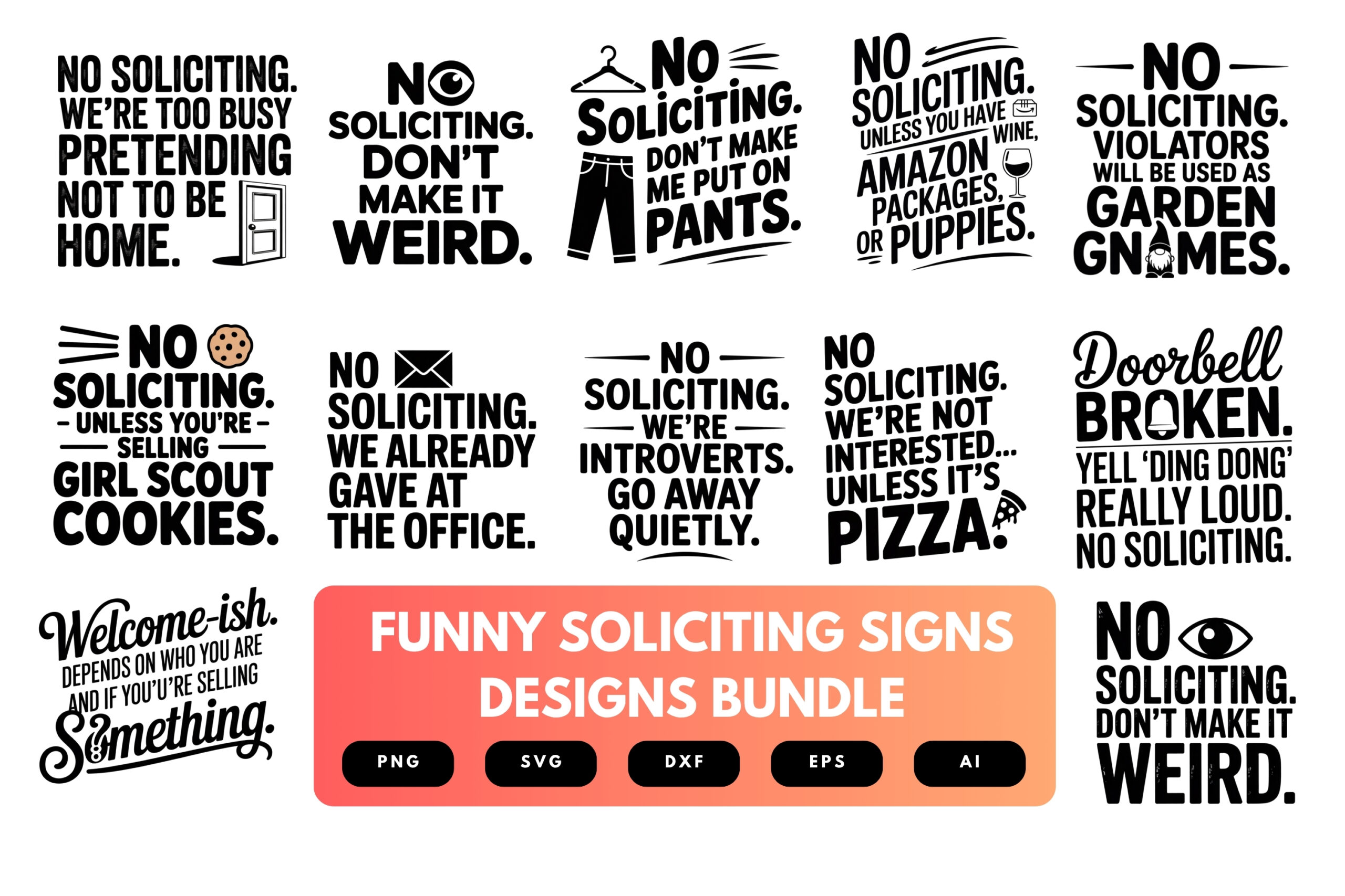 Funny Soliciting Signs SVG Bundle | Humorous No Soliciting Clipart, Funny Sign Cut Files for Cricut & Sublimation
