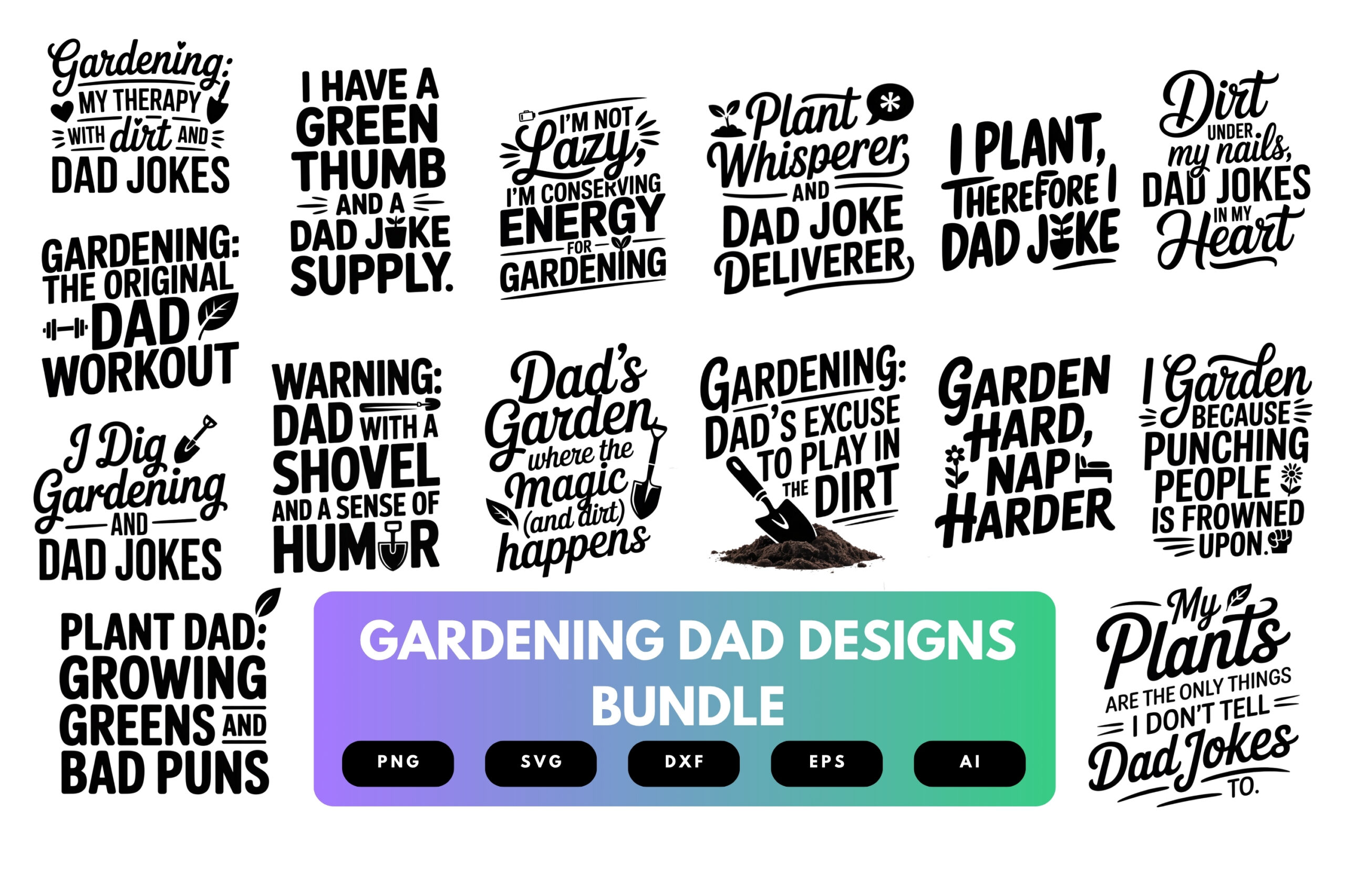 Gardening Dad SVG Bundle | Funny Garden Clipart, Plant Lover Silhouette Cut Files for Cricut & Sublimation