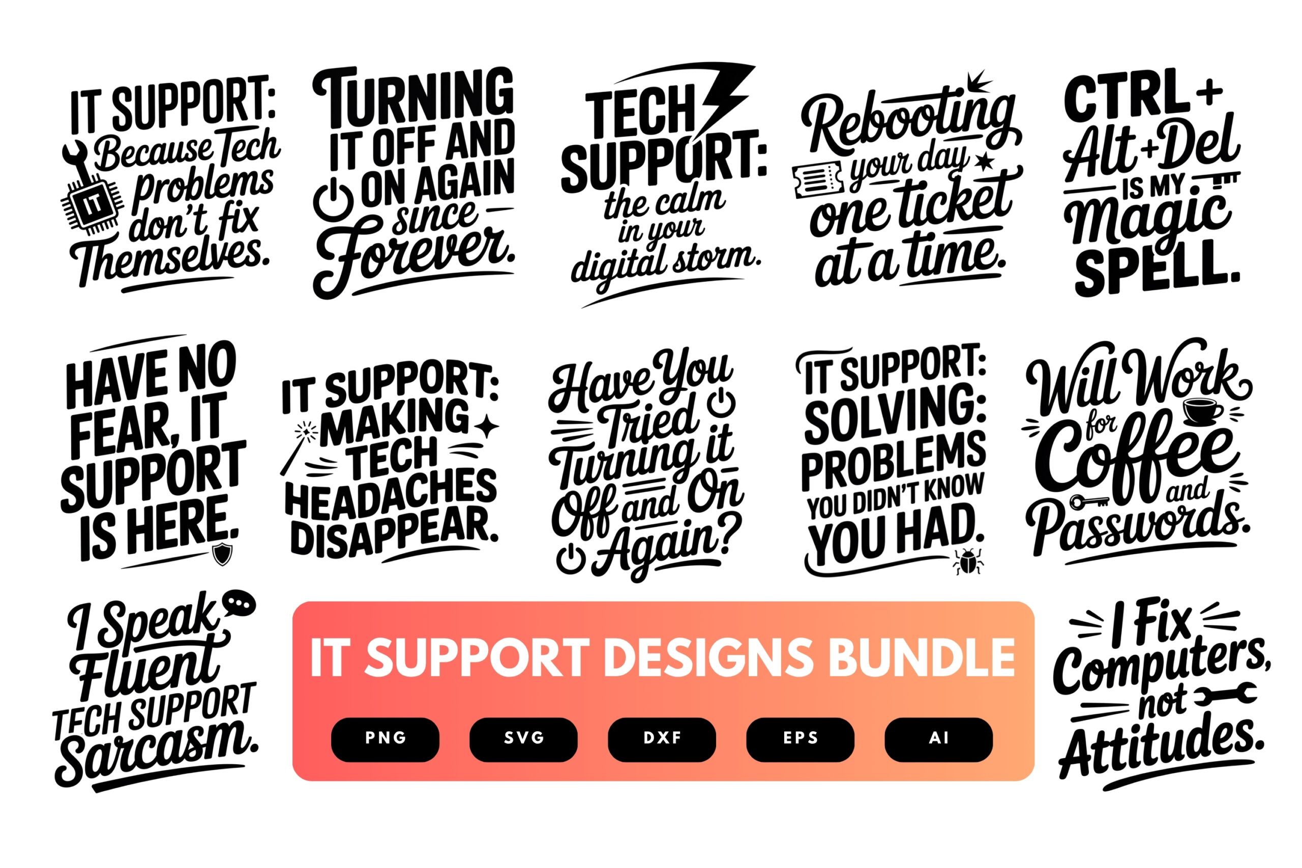 IT Support SVG Bundle | Tech Support Clipart, Funny Help Desk , Computer Quote Cut Files for Cricut & Sublimation