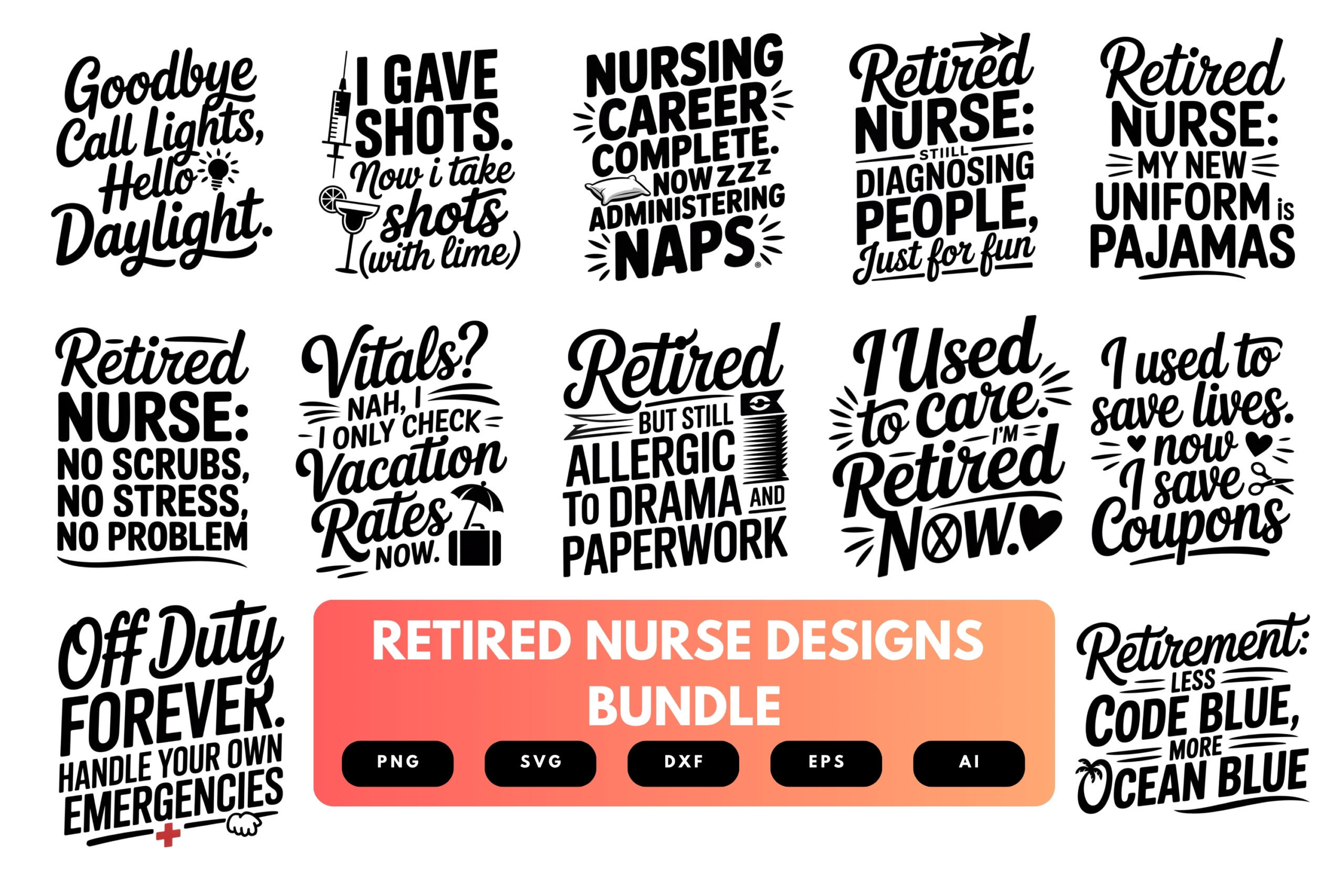 Retired Nurse SVG Bundle | Funny Nursing Retirement Quotes , Medical Clipart for Cricut, Sublimation & T-Shirts